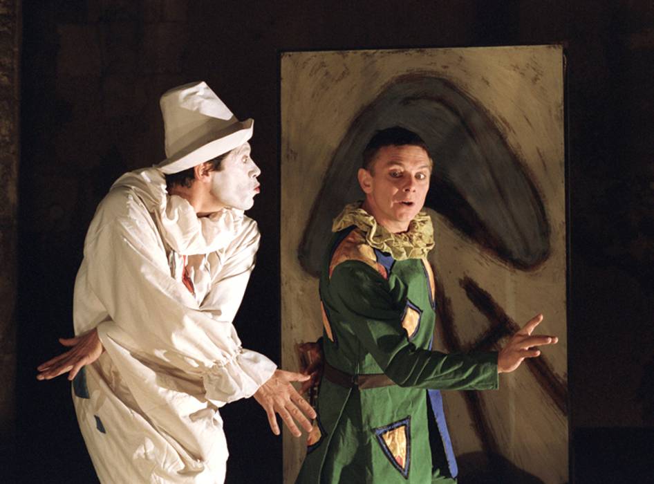 « PICALOGUE » : a triptych for theatre by Thierry Paillard, staged by Valérie Barral and Thierry Paillard. Musical arrangement by René Villermy, lighting by Éric Rolland, Arlequin and Comédia masks created by Sandrine Hatt-Naldini, decor by Denis Hatt, costumes by Maargret Koornstra. Photography credits - Caroline K. The players : Valérie Barral, Marko Nikolic, Virginie Lafontaine, Roland Pichaud, Thierry Paillard ; Dance and choreography by Claudia Flammin. Musicians : Cloé Picquier, viola da Gamba ; Toni Torelli, lute and theorbo; René Villermy, vihuela, lute and theorbo.